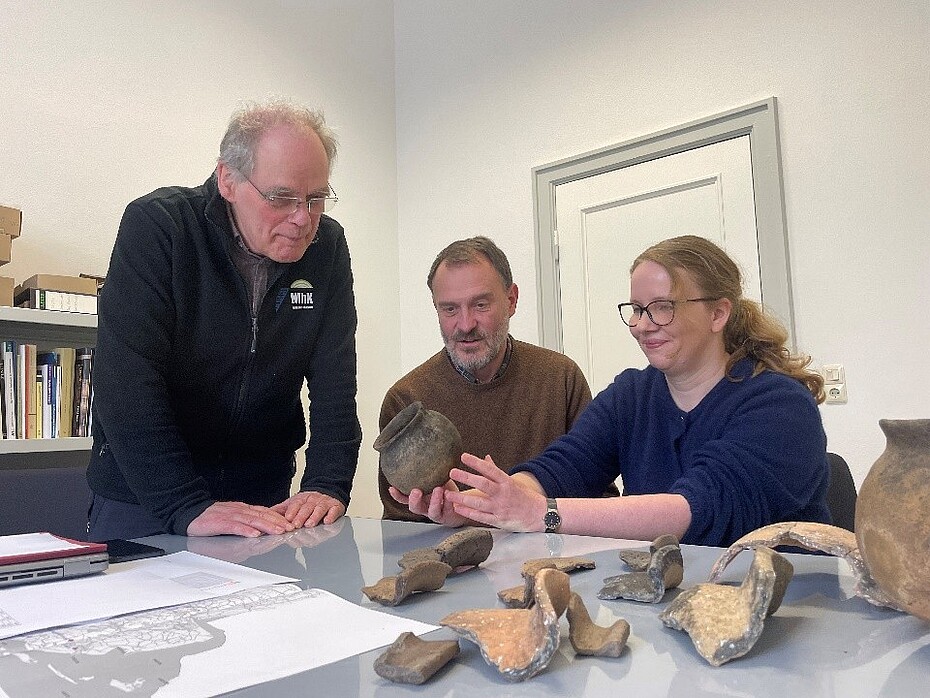 For over 15 years, there has been close cooperation between the NIhK and the Swedish ceramics expert Dr. Torbjörn Brorsson. He supports ceramics research at the institute by providing expert guidance to various projects based on his many years of experience. Particularly noteworthy is his support in evaluating chemical analyses of the raw materials used in pottery, which is a focus of ceramics research at the NIhK. The current DFG-project on early medieval shell-tempered ceramics also benefits significantly from his extensive knowledge and experience. The results achieved so far by the project were discussed in detail during a visit by Torbjörn Brorsson to Wilhelmshaven with the project leader, Prof. Dr Hauke Jöns, and Dr. Katrin Struckmeyer, the ceramics expert responsible for the research at the NIhK. In addition, plans were made to further expand and intensify the collaboration in the coming years. His knowledge of early medieval ceramics in Scandinavia and his close contacts with Scandinavian colleagues are particularly valuable for the current ceramic research at the NIhK.